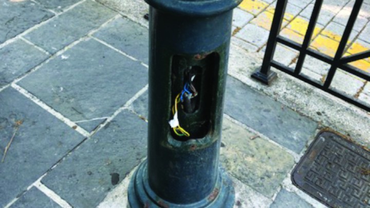Αντίλαλοι 21.05.2022 22:20 Εκτεθειμένα (και επικίνδυνα) καλώδια σε κολόνα στο πιο κεντρικό σημείο της Ρόδου