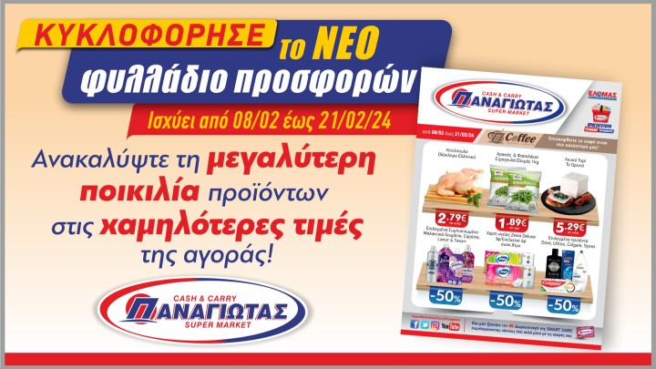 Market 08.02.2024 11:10 Ξεφυλλίστε online το Νέο Φυλλάδιο των Super Market Παναγιωτάς, που μόλις κυκλοφόρησε!