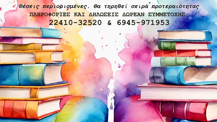 Πολιτισμός - Εκδηλώσεις 12.04.2024 12:45 Τρίωρο ανοιχτό εργαστήριο εκφραστικής γραφής την Τρίτη: «Ο εαυτός μου μέσα στις σελίδες των βιβλίων»
