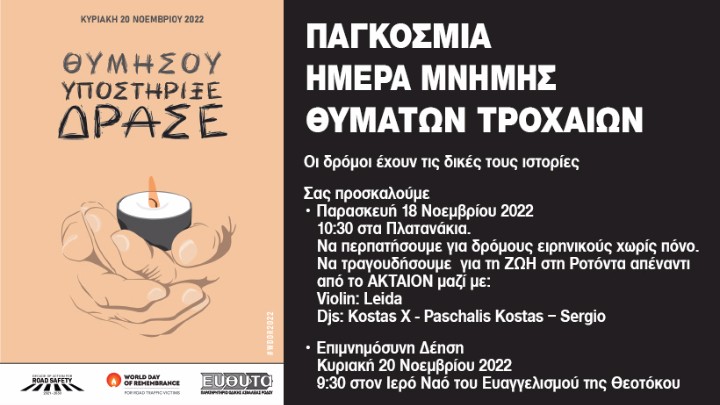 Επικαιρότητα 11.11.2023 15:35 Παγκόσμια Ημέρα Μνήμης Θυμάτων Τροχαίων: Κάλεσμα της ΕΥΘΥΤΑ στην επιμνημόσυνη δέηση στο Γ.Ν. Ρόδου