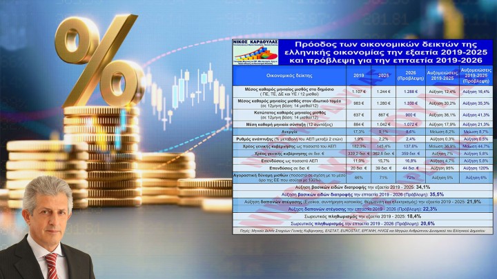 Επικαιρότητα 18.10.2025 12:45 Νίκος Καρδούλας: Πρόοδος των δεικτών της ελληνικής οικονομίας την 6ετία 2019-2025 και πρόβλεψη για την 7ετία 2019-2026