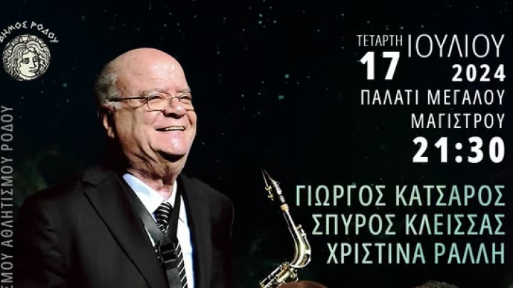 Πολιτισμός - Εκδηλώσεις 10.07.2024 18:40 Στο παλάτι του Μεγάλου Μαγίστρου ο μάγος του σαξοφώνου Γιώργος Κατσαρός