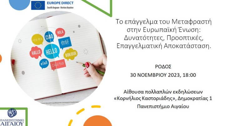 Πολιτισμός - Εκδηλώσεις 29.11.2023 19:15 Ενημερωτική ημερίδα για το επάγγελμα του μεταφραστή και την πρακτική άσκηση-εργασία στα θεσμικά όργανα της Ευρωπαϊκής Ένωσης