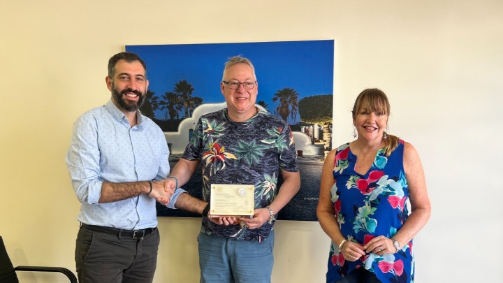 Επικαιρότητα 09.09.2024 13:48 Με Πλατινένια πλακέτα τιμήθηκε ζευγάρι Βρετανών τουριστών που έχει επισκεφθεί τη Ρόδο πάνω από 100 φορές