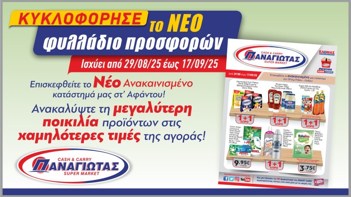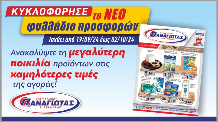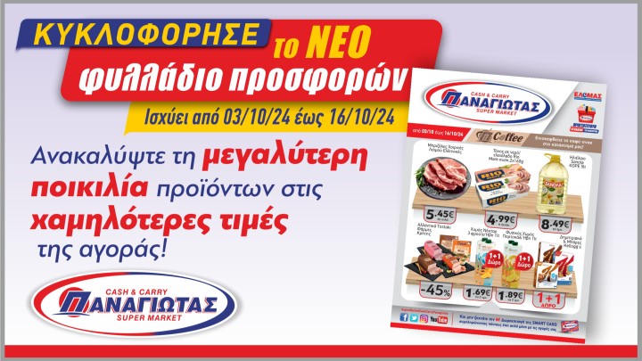 Επιχειρείν 03.10.2024 11:15 Super Market ΠΑΝΑΓΙΩΤΑΣ: Νέο Φυλλάδιο Προσφορών - Απίστευτες τιμές, ατελείωτη ποικιλία!