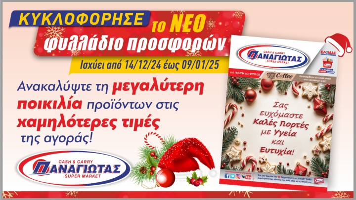 Market 15.12.2025 11:00 Super Market ΠΑΝΑΓΙΩΤΑΣ: Το Μεγάλο Εορταστικό Φυλλάδιο Προσφορών κυκλοφόρησε!