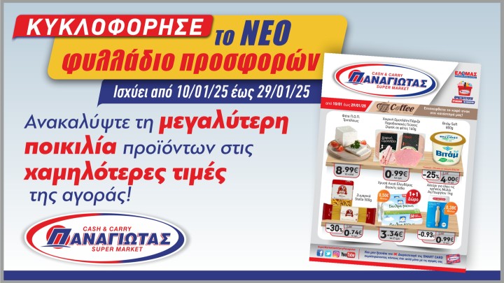 Market 10.01.2025 13:56 Super Market ΠΑΝΑΓΙΩΤΑΣ: Νέο Φυλλάδιο - Συνεχίζουμε με Δυνατές Προσφορές και το 2025!