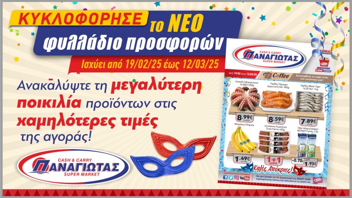 Market 10.02.2026 10:45 Super Market ΠΑΝΑΓΙΩΤΑΣ: Αποκριάτικη Χαρά & Σαρακοστιανή Νοστιμιά σε ένα Φυλλάδιο!