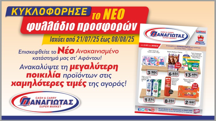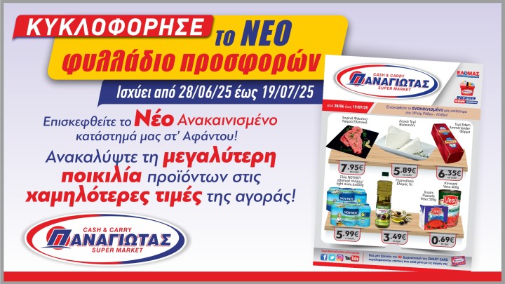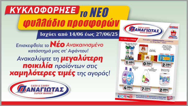 Market 14.06.2025 10:35 Super Market ΠΑΝΑΓΙΩΤΑΣ: Νέο Φυλλάδιο Προσφορών! Το Καλοκαίρι ξεκίνησε με Ασυναγώνιστες Τιμές!