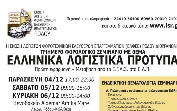 Επικαιρότητα 03.12.2015 17:55 Τριήμερο φορολογικό σεμινάριο από την Ένωση Λογιστών Φοροτεχνικών Ρόδου