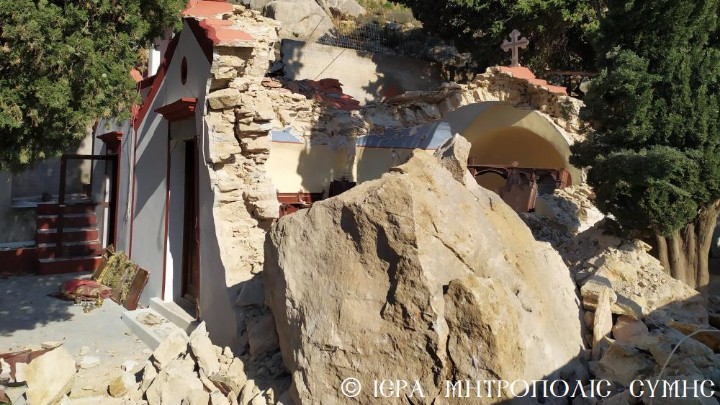 Καταπλακώθηκε απο βράχους το μοναστήρι του Αγίου Μερκουρίου στη Σύμη