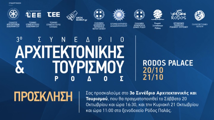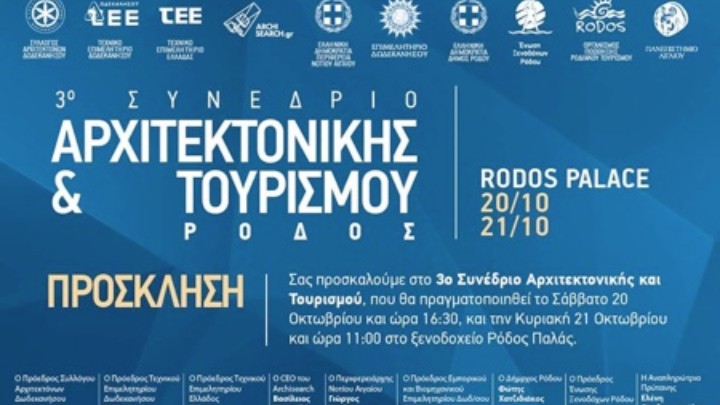 Παιδεία και Εκπαίδευση 23.04.2018 20:15 Τον Οκτώβριο στη Ρόδο το 3ο Συνέδριο Αρχιτεκτονικής και Τουρισμού