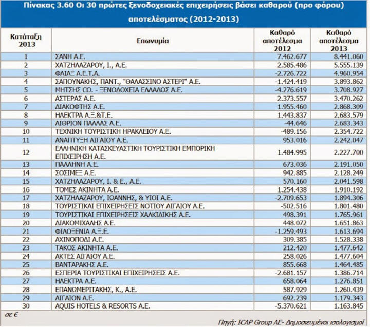 Στα αξιοσημείωτα το γεγονός ότι οι εταιρίες ΣΑΝΗ και ΧΑΤΖΗΛΑΖΑΡΟΥ, ήταν και το 2012 κερδοφόρες, παρά την κρίση.