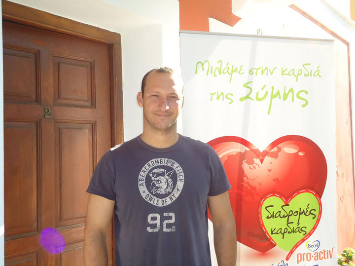 Εγώ είχα επιλεγεί γιατί έκανα βουτιές στη θάλασσα και γυμναζόμουν, αλλά παρόλα αυτά είχα χοληστερόλη, κι επομένως όλοι μπορεί να είχαν. Εκείνη είχε στο νου της να επιλέξει κάποιον γυμναστή, απ’ ό,τι μου είπε μετά. Ήδη όμως είχαν έρθει από τον Αύγουστο του 2012 στο μαγαζί μου στελέχη της εταιρείας που παράγει το βούτυρο που θα διαφημιζόταν, ξανάρθαν τον Οκτώβρη και μου είπαν ότι θέλουν να κάνουν μία διαφήμιση στη Σύμη.