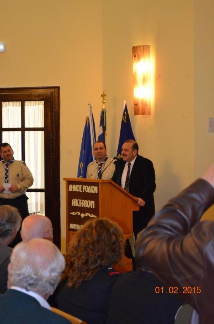 Ο Δήμαρχος Ρόδου κ.Φώτης Χατζηδιάκος αναφέρθηκε στο κοινωνικό πρόσωπο των Προσκόπων και ότι είναι πάντα έτοιμοι να προσφέρουν τις υπηρεσίες τους.
