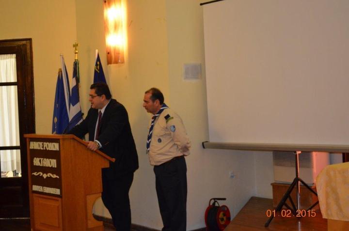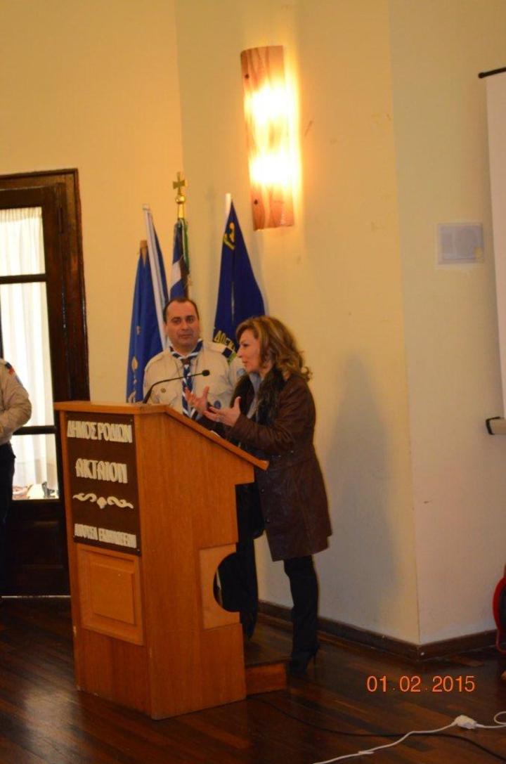 Στη συνέχεια υπήρξε προβολή από Δράσεις των Προσκόπων της Περιοχής μας, που έγιναν, την χρονιά που μας πέρασε και ομιλία για τον εθελοντή νέο - Πρόσκοπο από τις Βαθμοφόρους Έμιλυ Κόνιαρη και Σιμάι Καιμακτσή.
