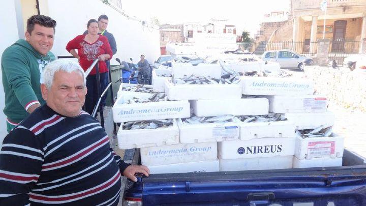 Εδώ και του Ευαγγελισμού και των Βαΐων δίνω στην εκκλησία του Αγίου Παντελεήμονα. Φέτος δώσαμε δυόμιση τόνους ψάρια σε 240 φελιζόλ και του Ευαγγελισμού δώσαμε 400 κιλά, δεν ήταν καλός ο καιρός. Τα δώσαμε με τον παπά Χρήστο, να ΄ναι καλά. Και στο Γηροκομείο δίνουμε καμιά φορά και στο ορφανοτροφείο... Εννιά χρόνια είμαστε με τον παπά Χρήστο.