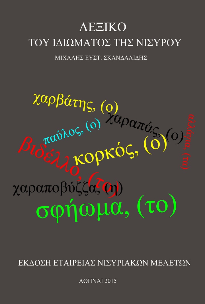 Συνεχίζοντας το εκδοτικό της έργο, η Εταιρεία Νισυριακών Μελετών παρουσιάζει στη Νίσυρο το βράδυ της Τετάρτης 12ης Αυγούστου ε.έ. το «ΛΕΞΙΚΟ ΤΟΥ ΙΔΙΩΜΑΤΟΣ ΤΗΣ ΝΙΣΥΡΟΥ» που συνέταξε ο γνωστός από το πολυσχιδές συγγραφικό του έργο και την ενασχόλησή του με τα τοπικά ιδιώματα των νησιών μας, δόκιμος συγγραφέας, συμπατριώτης μας Μιχάλης Σκανδαλίδης.