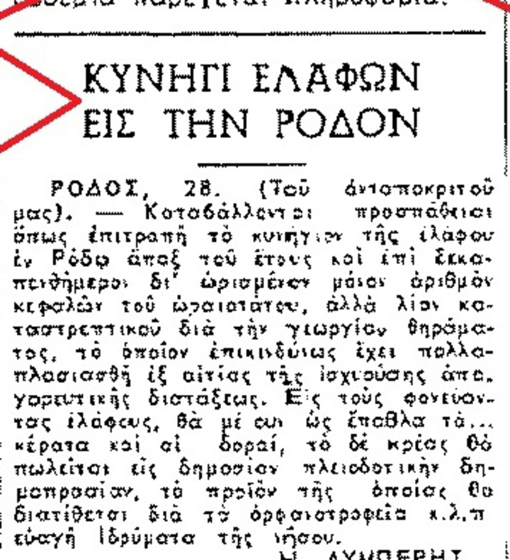 Να γιατί λέμε ότι σε αυτό τον τόπο τίποτα δεν αλλάζει και όλα... σχεδόν επαναλαμβάνονται. Από το 1951 είχε “ανοίξει” για πρώτη φορά η υπόθεση με το κυνήγι του ελαφιού στη Ρόδο. Και τότε, ευτυχώς, έκλεισε πολύ σύντομα. Έπειτα από τις έντονες αντιδράσεις που ακολούθησαν. Για την ιστορία την πρόταση τότε (1951) είχε καταθέσει τμηματάρχης του Δασαρχείου...