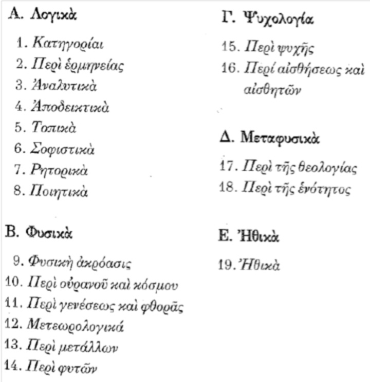 Το αριστοτελικό corpus κατά Ανδρόνικο.