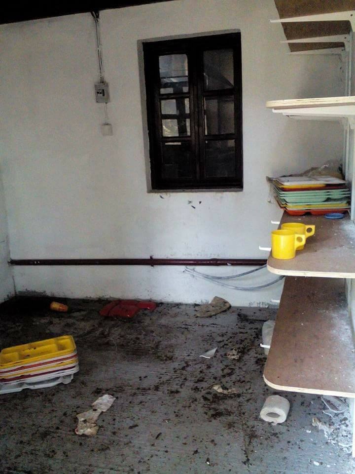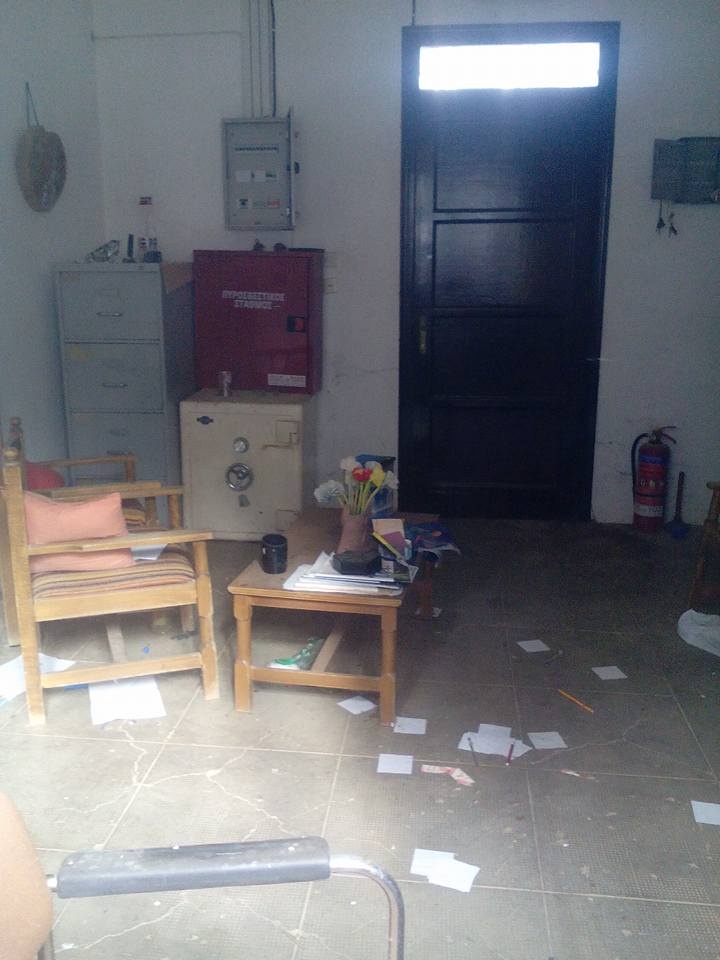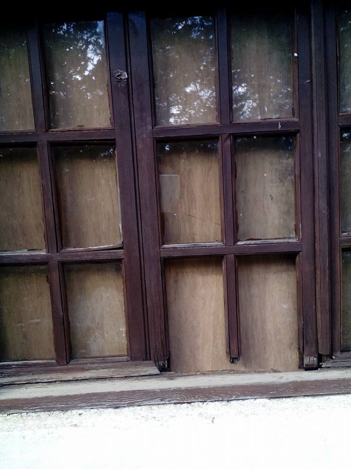 Σπασμένα τζάμια...πρόχειρα προφυλαγμένα με κόντρα πλακέ, στρώματα που κάποτε κοιμότανε άνθρωποι .......εκτεθειμένα στις ακαθαρσίες των τρωκτικών, σπασμένες κουπαστές, γήπεδα χορταριασμένα, φάρμακα ξεχασμένα να .........λιάζονται στις προθήκες των παραθύρων, ενα λάστιχο νερού στη μέση του γηπέδου.