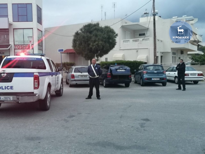 Σε ελάχιστα λεπτά, η Τροχαία Ρόδου έκλεισε το σημείο του δρόμου, ενώ άμεσα εκκενώθηκε το κτίριο από αστυνομικούς της ασφάλειας Ρόδου.