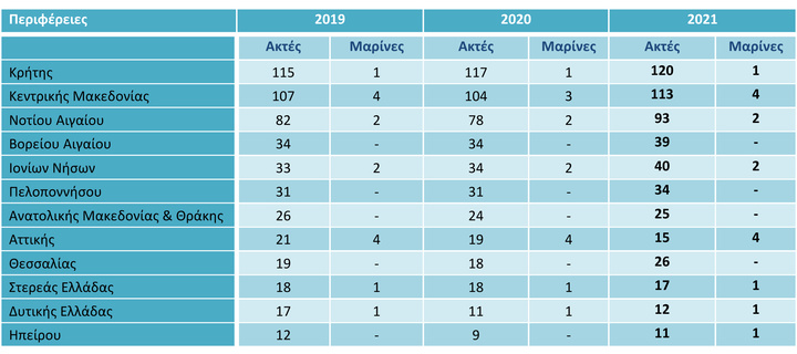 Περιφέρειες με βραβευμένες ακτές και μαρίνες