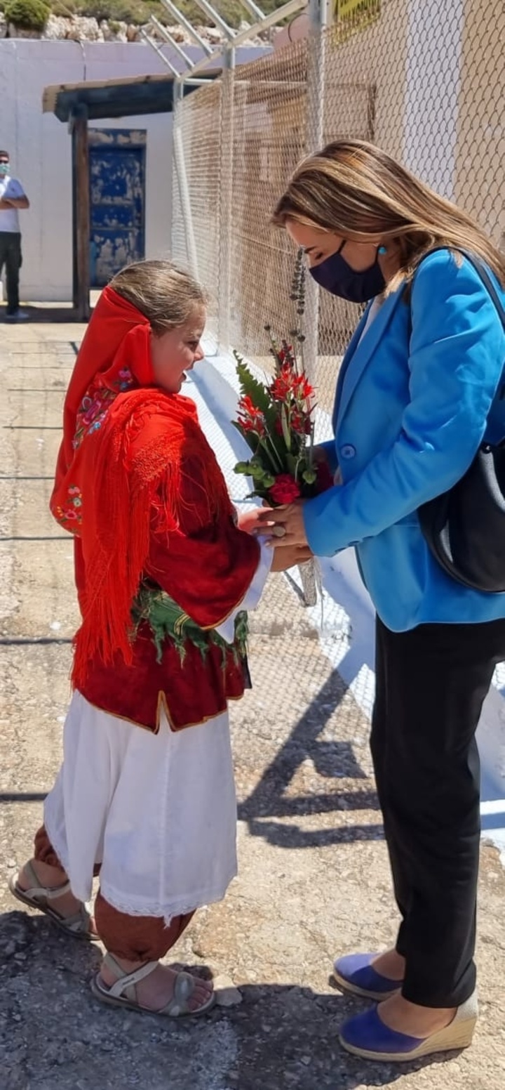 «Είμαι ιδιαίτερα συγκινημένη που βρίσκομαι σ’ αυτό το υπέροχο ακριτικό νησί της πατρίδας μας.