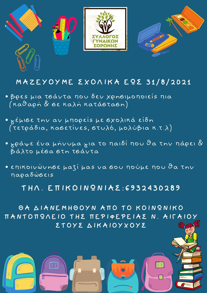 «Μαζεύουμε σχολικά είδη έως τις 31 Αυγούστου 2021.