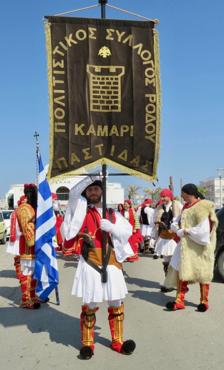 «Την αναπαράσταση της ορκωμοσίας των αγωνιστών και της κήρυξης της Επανάστασης του 1821 θα παρουσιάσει και φέτος ο Πολιτιστικός Σύλλογος Παστίδας «Καμάρι» στην Πόλη της Ρόδου σήμερα Σάββατο 25/03/2023, μετά την παρέλαση, στον προαύλιο χώρο του Ιερού Ναού Ευαγγελισμού της Θεοτόκου (σιντριβάνι) σε συνδιοργάνωση με τη περιφέρεια Νοτίου Αιγαίου, θέλοντας έτσι να αποδώσει τιμή και ευγνωμοσύνη σε όσους αγωνίστηκαν για τη δημιουργία ενός ελεύθερου, ανεξάρτητου και σύγχρονου κράτους.