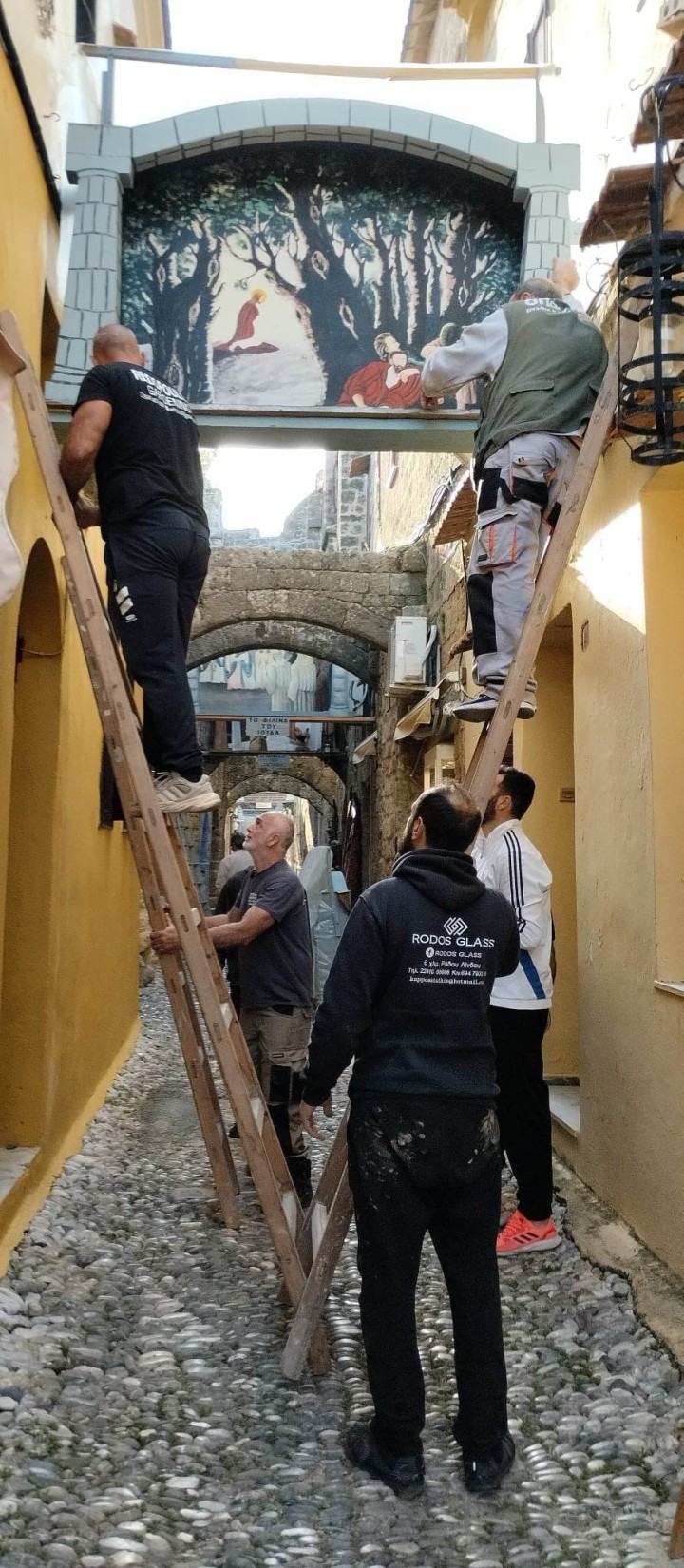 Το εικαστικό έργο της «Αναπαράστασης των Παθών του Ιησού» που «ανεβαίνουν» κάθε Μεγαλοβδομάδα στις οδούς Ομήρου και Αγ.Φανουρίου από τον ιδιοκτήτη της Συλλογής κ. Γιώργο Καρίπη. Τα έργα που είχαν υποστεί τη μεγαλύτερη φθορά μεταφέρθηκαν στο Μουσείο Νεοελληνικής Τέχνης δήμου Ρόδου όπου συντηρήθηκαν τα προηγούμενα χρόνια.