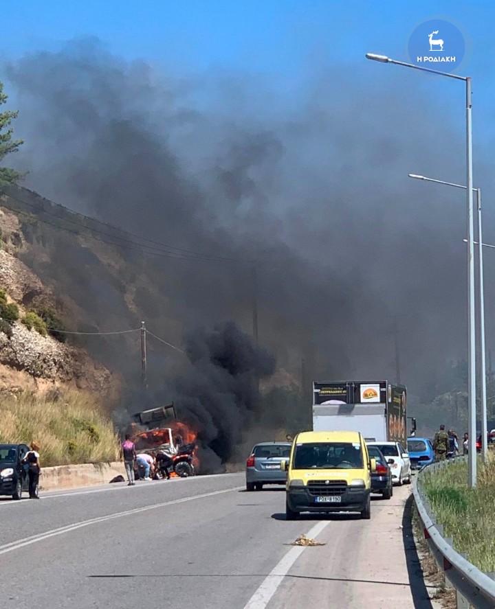 Σοβαρό τροχαίο ατύχημα στη Ρόδο - Στις φλόγες τυλίχτηκαν δύο οχήματα μετά από σύγκρουση (βίντεο)