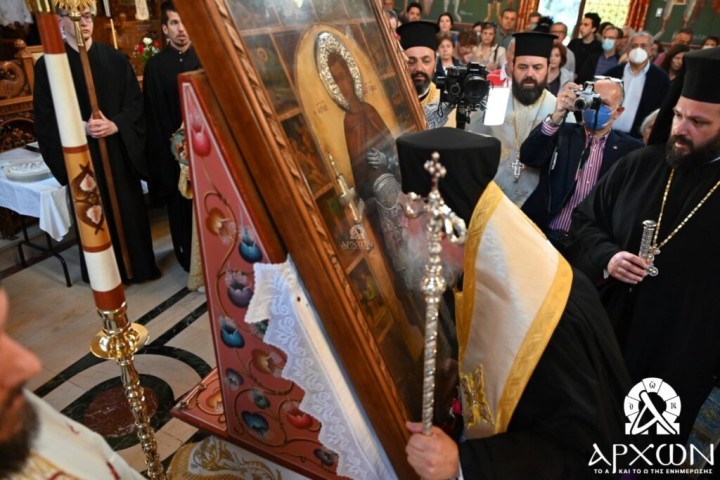 Την Ιερά Εικόνα διεκόμισε, από τον ομώνυμο Προσκυνηματικό Ναό της Ρόδου όπου φυλάσσεται, ο εφημέριος Πρωτοπρεσβύτερος Μιχαήλ Κρητικού.
