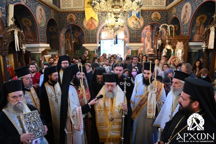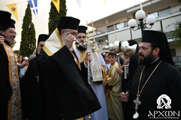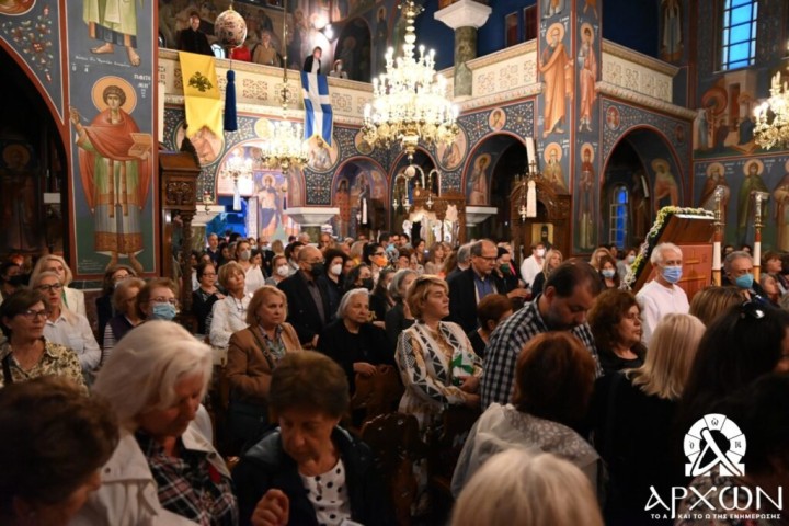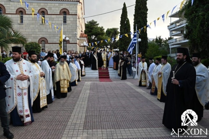 Ακολούθησε Πανηγυρικός Αρχιερατικός Εσπερινός χοροστατούντος του Μητροπολίτου Κηφισίας κ. Κυρίλλου, ο οποίος στο τέλος ευχαρίστησε τον Σεβασμιώτατο Μητροπολίτη Ρόδου κ. Κύριλλο για την άδεια εξόδου της Ιεράς Εικόνας καθώς και τον Πρωτοπρεσβύτερο Μιχαήλ Κρητικού για την μεταφορά του Ιερού σεβάσματος.
