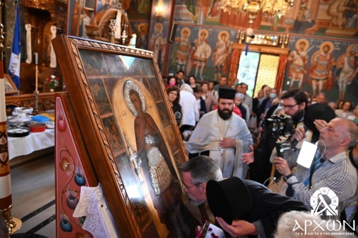 Με λαμπρότητα και σε κλίμα θρησκευτικής ευλάβειας υποδέχθηκαν στον Ιερό Ναό Αγίας Τριάδος Νέας Κηφισιάς την θαυματουργή Εικόνα του Αγίου Μεγαλομάρτυρος Φανουρίου του Νεοφανούς από την Ιερά Μητρόπολη Ρόδου.