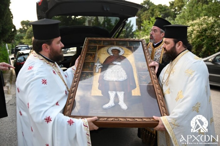 Φωτορεπορτάζ: Εκατοντάδες πιστοί στην Νέα Κηφισιά για την υποδοχή της εικόνας του Αγίου Φανουρίου Ρόδου