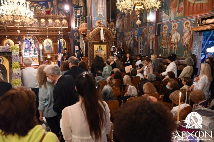 Την υποδέχθηκε στα προπύλαια του Ναού ο Σεβασμιώτατος Μητροπολίτης Κηφισίας, Αμαρουσίου, Ωρωπού & Μαραθώνος κ. Κύριλλος , συνοδεία του Ιερού Κλήρου της Μητροπόλεως και την παρουσία εκατοντάδων πιστών που σχημάτισαν ατέλειωτες ουρές.