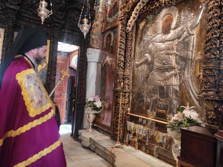 Πρώτος σταθμός της επισκέψεως του Μητροπολίτη Νέας Ιερσέης, η Ιερά Μονή Ταξιάρχη Μιχαήλ Του Πανορμίτου.