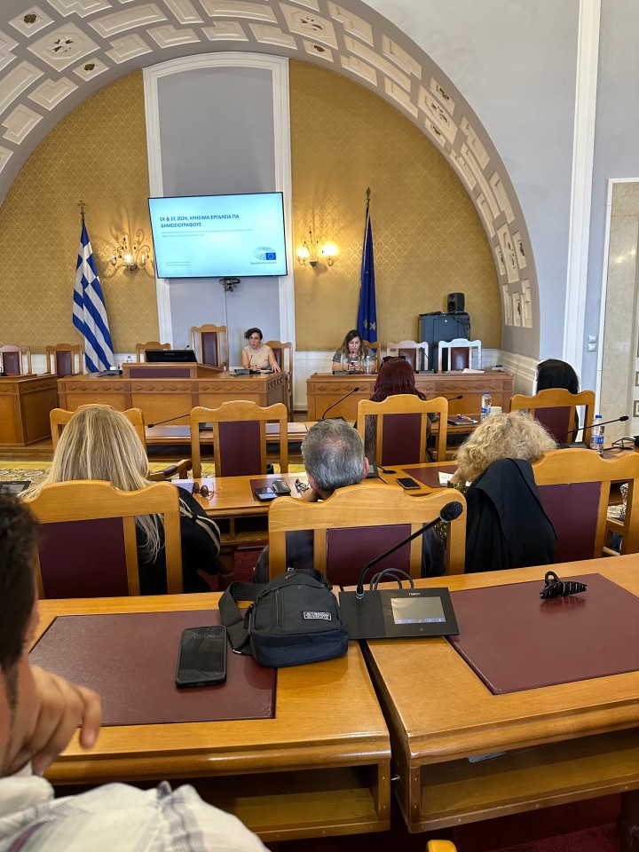 Το πρωί της ίδιας ημέρας πραγματοποιήθηκε εργαστήριο για τους δημοσιογράφους των τοπικών και περιφερειακών μέσων. Στο πρώτο μέρος ο επικεφαλής του Γραφείου του ΕΚ στην Ελλάδα Κωνσταντίνος Τσουτσοπλίδης τόνισε τη σπουδαιότητα των ευρωπαϊκών ζητημάτων στην καθημερινότητα των πολιτών, καθώς και το πόσο σημαντική είναι η ψήφος όλων στις επερχόμενες Ευρωπαϊκές Εκλογές της 9ης Ιουνίου 2024. Η επικεφαλής του Europe Direct Νοτίου Αιγαίου Φιλία Παπασάββα αναφέρθηκε στη διαρκή παρουσία του Κέντρου στα Δωδεκάνησα και πώς διευκολύνει την επικοινωνία των πολιτών με την Ένωση, ενώ η υπεύθυνη Επικοινωνίας της Αντιπροσωπείας της Ευρωπαϊκής Επιτροπής στην Ελλάδα Εύη Γεωργίτση επεσήμανε τον καθοριστικό ρόλο του "Σχεδίου Δράσης της ΕΕ για τη δημοκρατία".