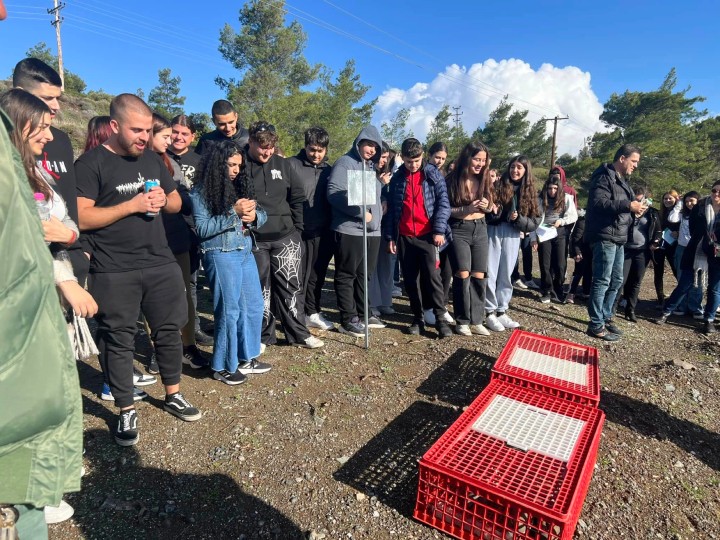 Τα πτηνά απελευθέρωσαν οι μαθητές και οι μαθήτριες από το σχολικό συγκρότημα του Έμπωνα, παρουσία και των εκπαιδευτικών τους το πρωί της περασμένης Τρίτης, 13 Φεβρουαρίου.