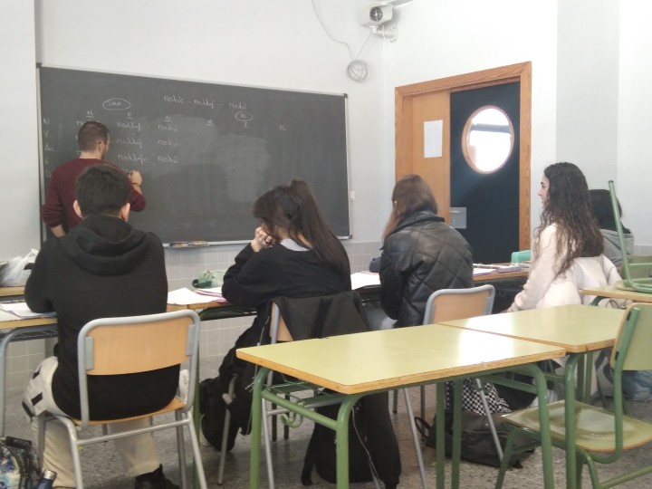 Με τους Ισπανούς μαθητές και μαθήτριες που τους φιλοξενούσαν, μετέβησαν στην Peniscola και γεύτηκαν παραδοσιακά εδέσματα. Παρακολούθησαν μαθήματα Αρχαίων Ελληνικών, Λατινικών, Μαθηματικών, Τεχνολογίας, Αγγλικών, Φυσικής Αγωγής. Μάλιστα στο πλαίσιο του μαθήματος της Τεχνολογίας, το κάθε παιδί κατασκεύασε το δικό του γάντι για να λάβει μέρος στο παραδοσιακό άθλημα Va De Bo. Την τελευταία μέρα πριν την αναχώρησή μας πραγματοποιήθηκαν αγώνες Va De Bo μεταξύ των Ελλήνων και Ισπανών μαθητών και ακολούθησε μουσική εκδήλωση με παραδοσιακά τραγούδια και χορούς της περιοχής.