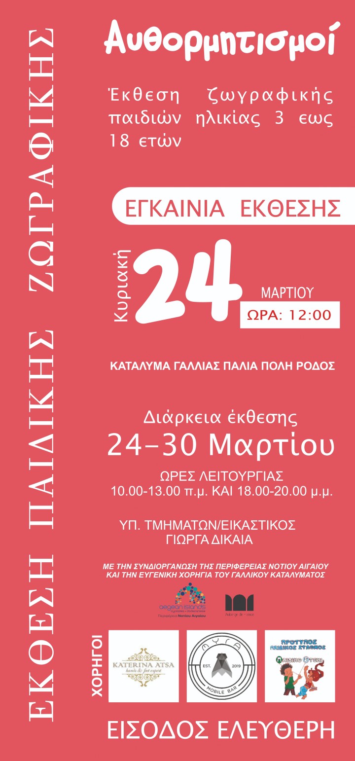 Την προσεχή Κυριακή 24 Μαρτίου θ’ ανοίξει τις πύλες της, η έκθεση παιδικής ζωγραφικής με τίτλο «Αυθορμητισμοί».