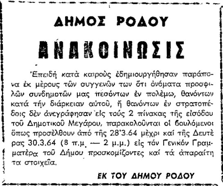 Μετά την επάνοδον των εκ της εν λόγω νήσου οι κ.κ. Στ. Ψύλλας και Δ. Ρουσιάνος θα μεταβούν εις τας Κοινότητας Γενναδίου Καλαβάρδων Φανών κ.λπ. της νήσου Ρόδου διά την πραγμάτευσιν της αγοράς εμπορικών και βιομηχανικών καπνών εκ των εν λόγω περιφερειών διά τας ανάγκας της Καπνοβιομηχανίας.