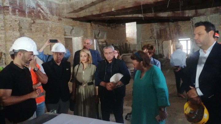 Η κα Μενδώνη επιθεώρησε και τον εξωτερικό χώρο καθώς, όπως την ενημέρωσαν, έχουν ήδη ετοιμάσει δύο δείγματα διαφορετικών υλικών για το εξωτερικό επίχρισμα, τα οποία θα εξετάσει το Υπουργείο για να επιλέξει και έχουν αφήσει κάποιες ημέρες για να πάρει το τελικό του χρώμα. Η Υπουργός είπε, ότι η επιλογή θα γίνει επιτόπου.