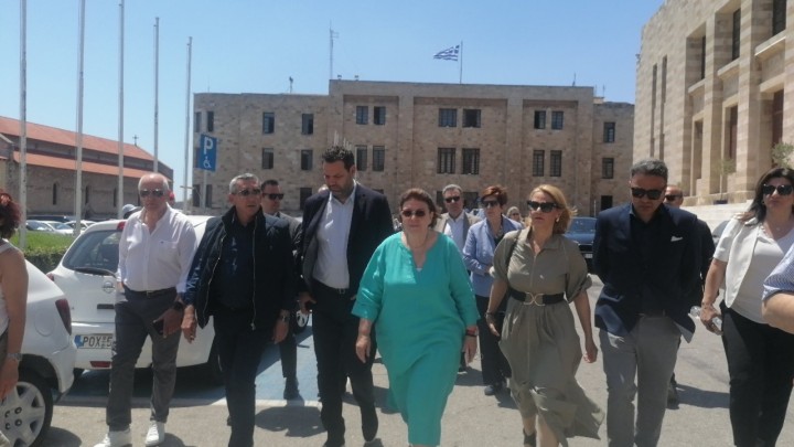 Για ένα μεγάλο στοίχημα έκανε λόγο η Υπουργός, μέσα από το Εθνικό Θέατρο, το οποίο επισκέφθηκε χθες γύρω στο μεσημέρι και ζήτησε (και είχε) αναλυτική ενημέρωση από τον αρχιμηχανικό του έργου, τον προϊστάμενο του Τμήματος Μελετών των Τεχνικών Υπηρεσιών της Περιφέρειας, κ. Νίκο Λυμπερόπουλο, παρουσία του περιφερειάρχη κ. Γιώργου Χατζημάρκου, του δημάρχου Ρόδου κ. Αλέξανδρου Κολιάδη, των βουλευτών Δωδεκανήσου κ.κ. Μάνου Κόνσολα, Βασίλη Υψηλάντη και της κας Μίκας Ιατρίδη, του κ. Αντώνη Γιαννικουρή κ.ά.