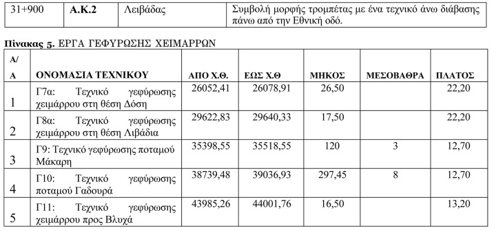 Λόγω του ότι τμήμα της υφιστάμενης γέφυράς στη θέση Γ9 έχει ήδη καταρρεύσει (λόγω έντονης βροχόπτωσης) σε χρόνο που έπεται της κατάθεσης Φακέλου ΜΠΕ (25/11/2019), θα κατασκευαστεί νέο τεχνικό στη θέση αυτή, του οποίου τα τεχνικά χαρακτηριστικά, η ακριβής θέση και η διάταξη θα περιληφθούν σε Φάκελο Συμμόρφωσης Τελικού Σχεδιασμού σε απαίτηση ενημέρωσης της παρούσης.