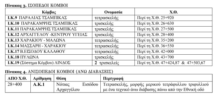 Τέλος, συμφώνα με τη ΜΠΕ «... κατά την εκπόνηση της οριστικής μελέτης δύναται να εξεταστεί η μετατροπή των δύο ανισόπεδων κόμβων σε ισόπεδους βάσει των δεδομένων τα οποία θα έχουν προκύψει από την εκπόνηση των επί μέρους μελετών». Οι ενδεχόμενες αλλαγές είτε θα συμπεριληφθούν σε Φάκελο Συμμόρφωσης Τελικού Σχεδιασμού είτε θα γίνει Τροποποίηση ΑΕΠΟ.
