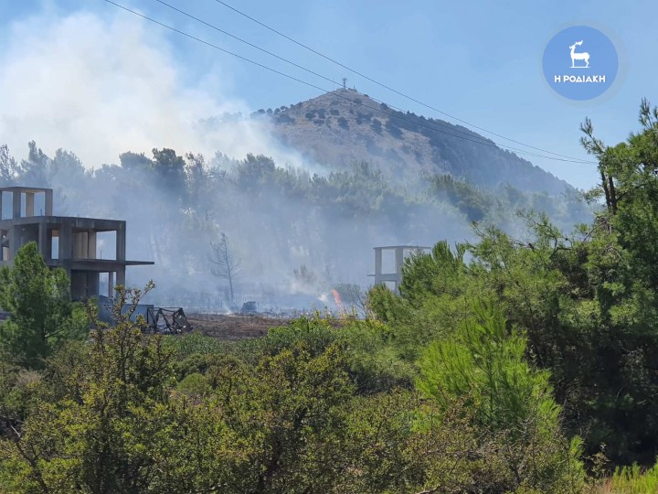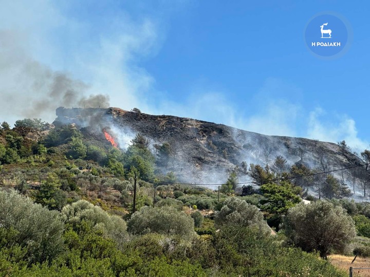 Ενημέρωση για τη φωτιά που βρίσκεται σε εξέλιξη στη Ροδο, στην περιοχή μεταξύ Παστίδας και Μαριτσών.