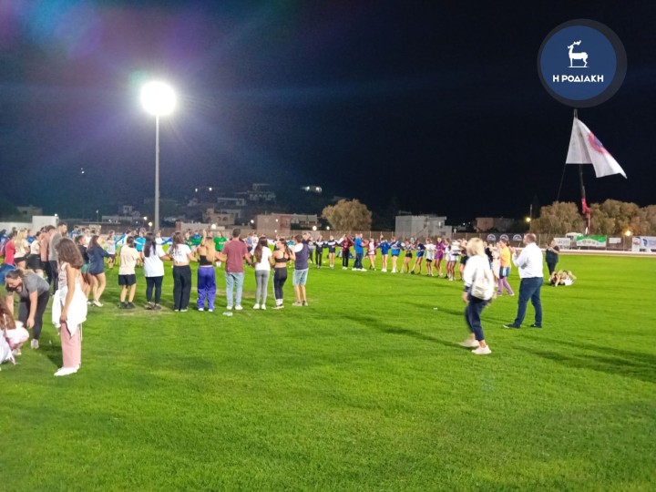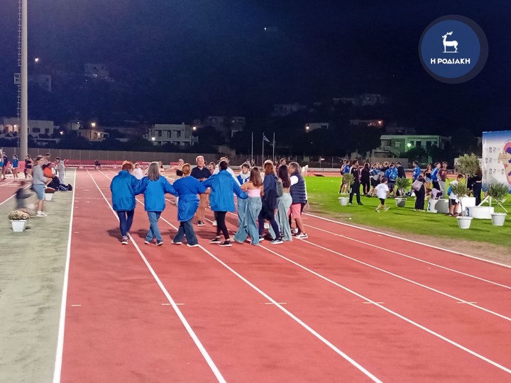 Αυτή τη στιγμή στο στάδιο του Ξηροκάμπου έχει στηθεί ένα μεγάλο νησιωτικό γλέντι, με τους αθλητές και τις αθλήτριες να το διασκεδάζουν και να χορεύουν σε μια ξεχωριστή... τελετή λήξης, δείγμα της αιγαιοπελαγίτικης φιλοξενίας.