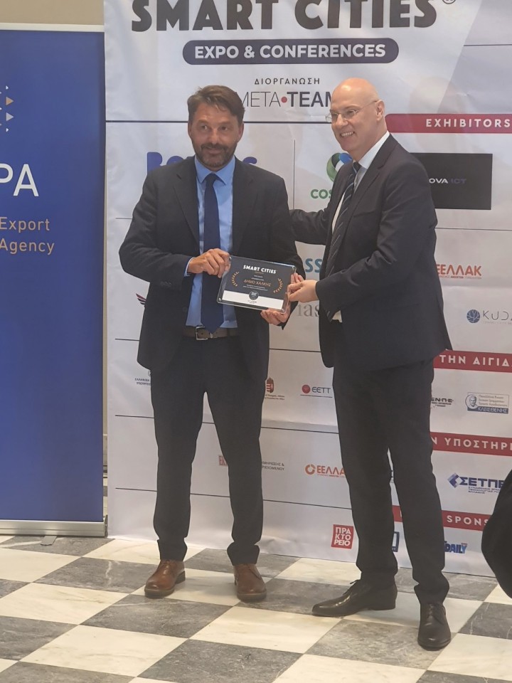 Επίσης ο Δήμαρχος παρέλαβε το βραβείο του Δήμου Χάλκης από τους διοργανωτές για την εντυπωσιακή ψηφιακή μετάβαση των υπηρεσιών του Δήμου
